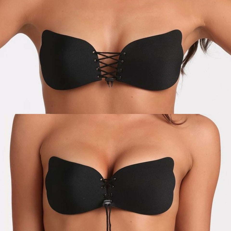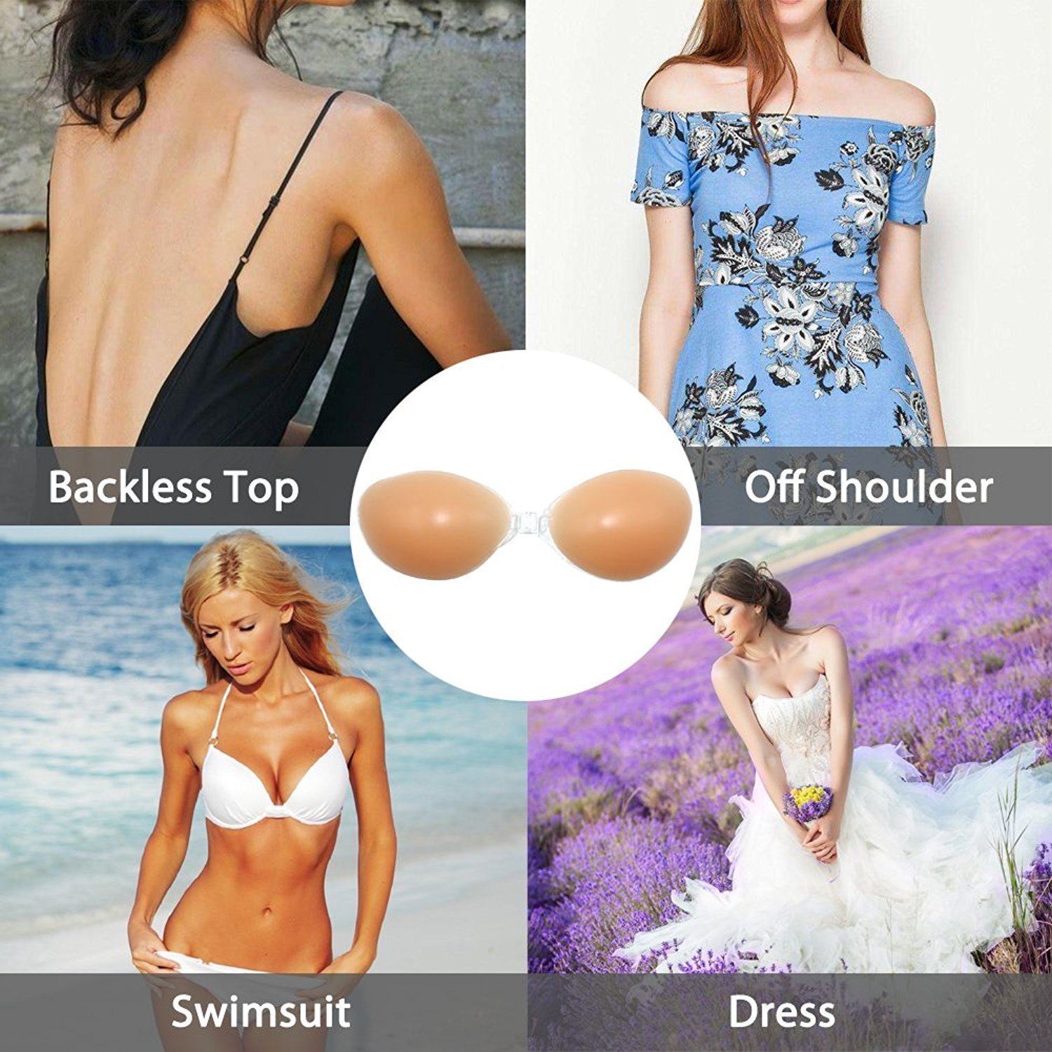 This stick-on push up bra enhances your cleavage and instantly adds 2 Cups to your bust line. This is the perfect bra for strapless, backless, low cut, plunging, halter, crisscross and other revealing styles.